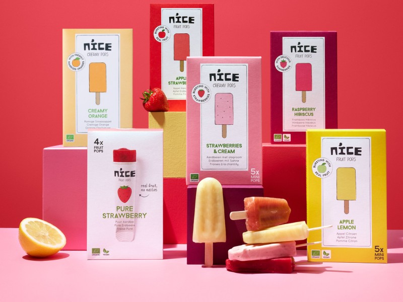 Puur Fruit ijsjes, dat is het product waarmee Nice de biologische ijsmarkt verovert. Accountmanager Elise Franken legt uit hoe dat komt: “Nice staat voor eerlijke, echte ijsjes met pure ingrediënten. Zonder vier soorten suiker, poeders of geconcentreerde fruitsappen en zeker zonder geur-, kleur- en smaakstoffen. Zo zit er in ons ijsje Puur Aardbei 70% echte verse aardbeien. Dankzij die volle aardbeiensmaak is extra toevoeging bijna niet nodig. Alleen een beetje water, citroensap en rietsuiker voor de perfecte balans. We zijn er best een beetje trots op om te vertellen dat geen ander aardbeienijsje in Nederland zoveel verse aardbeien bevat!”